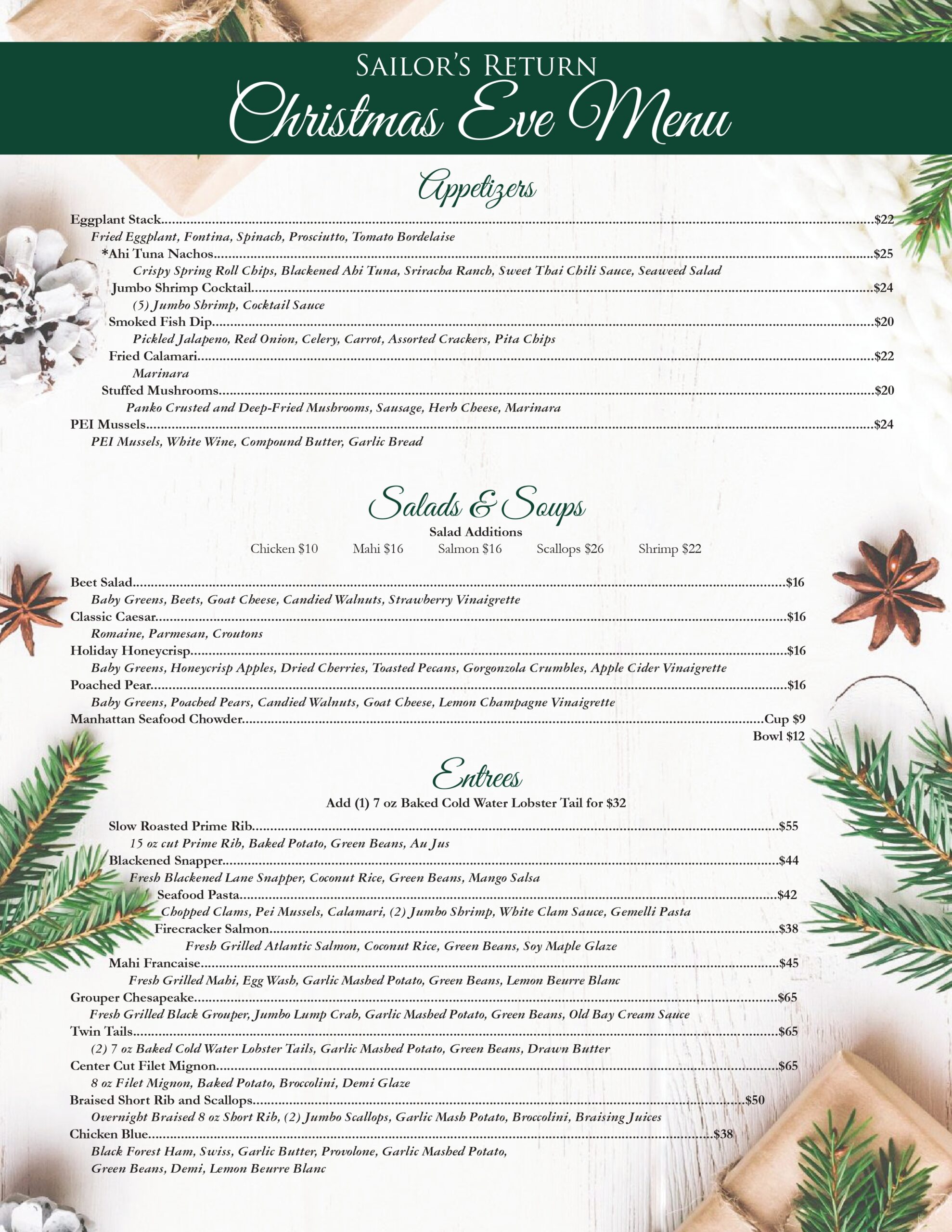 Christmas Eve Menu Served 11:00 am – 8:00 pm 🎄