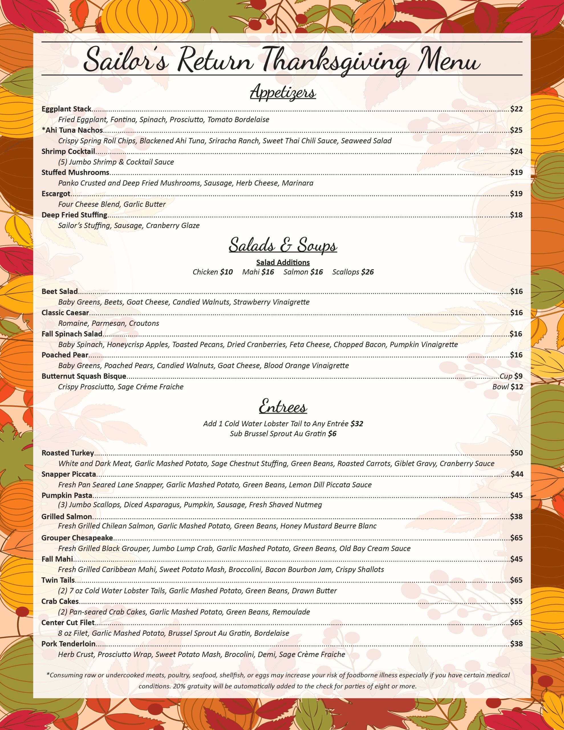 Sailor’s Return is thankful to have patrons like you. Happy Thanksgiving!